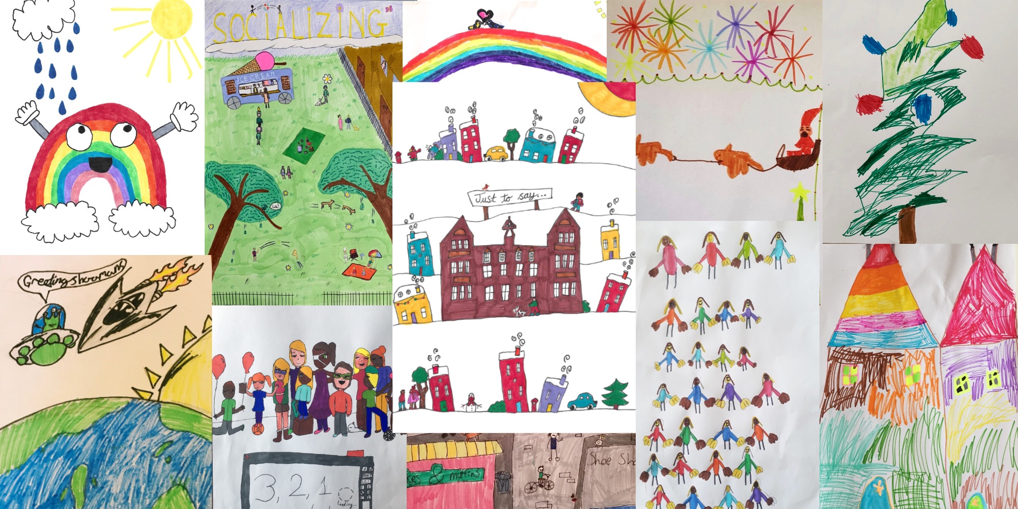Entries to the Bruntsfield Primary School art competition to design a greetings card around the theme